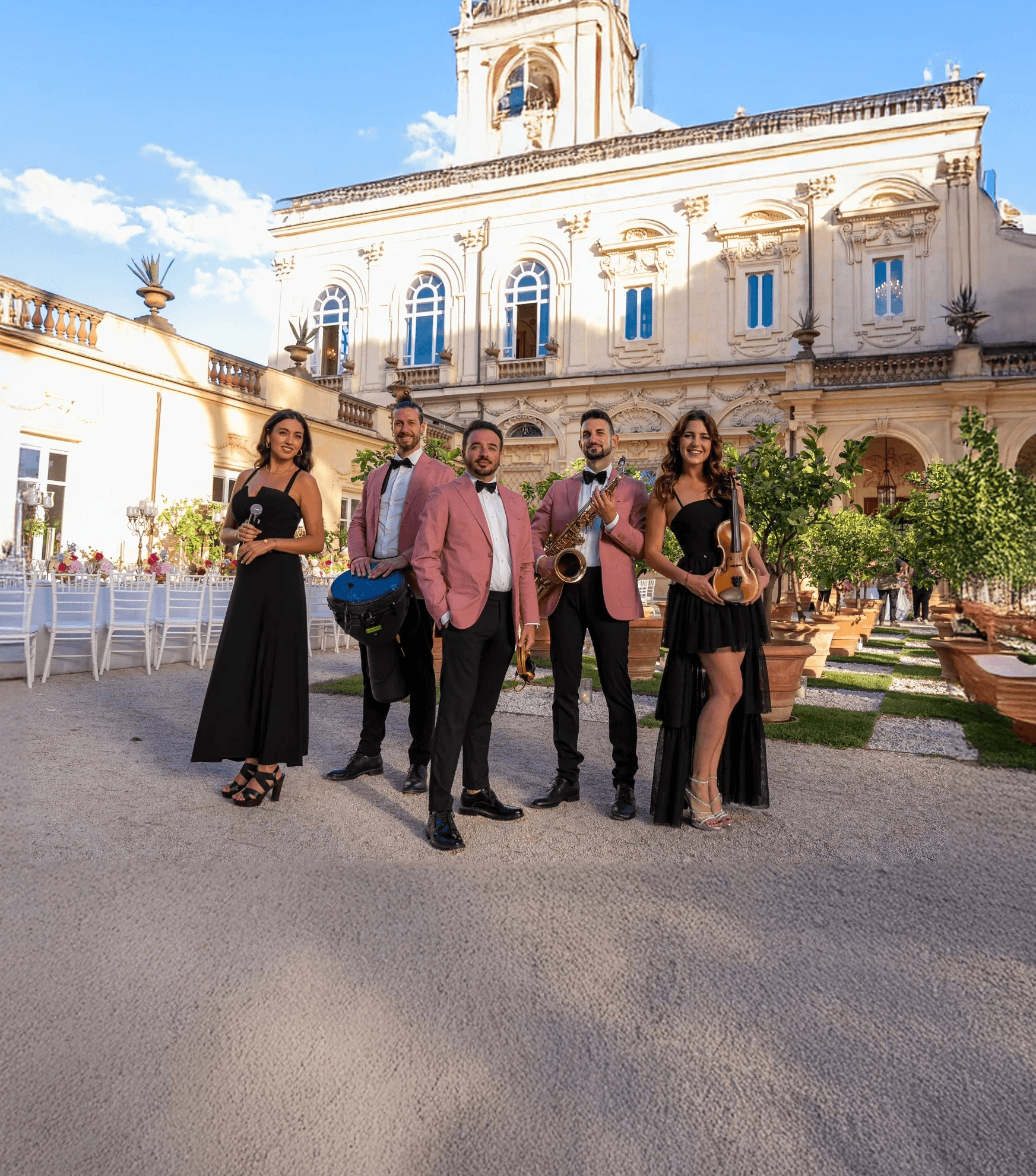 Un approccio che va oltre il semplice suonare: il nostro obiettivo è garantire che ogni evento sia un successo assoluto, creando un'atmosfera esclusiva attraverso spettacoli strutturati e personalizzati in base ai gusti degli sposi. La nostra attenzione all'intrattenimento si riflette nella cura meticolosa di ogni dettaglio, perché sappiamo quanto ogni istante di quel giorno sia fondamentale per gli sposi e i loro ospiti.